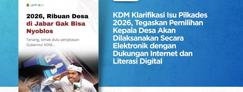 Adanya pemberitaan tentang “2026, ribuan desa di jabar gak bisa nyoblos” KDMpun menjelaskan tentang hal tersebut ,dengan mengeluarkan SE Nomor 143/PMD.01/DPN-Desa tentang fasilitasi pelaksanaan pemilihan kepala desa setentak secara elektonik /digital.