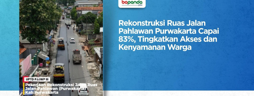 Purwakarta — Pemerintah Provinsi Jawa Barat terus mempercepat pembangunan infrastruktur daerah. Terbaru, progres pekerjaan rekonstruksi di Ruas Jalan Pahlawan Kabupaten Purwakarta telah mencapai 83%, dari total panjang penanganan 1,8 km, dengan nilai kontrak sebesar Rp7.069.000.000.