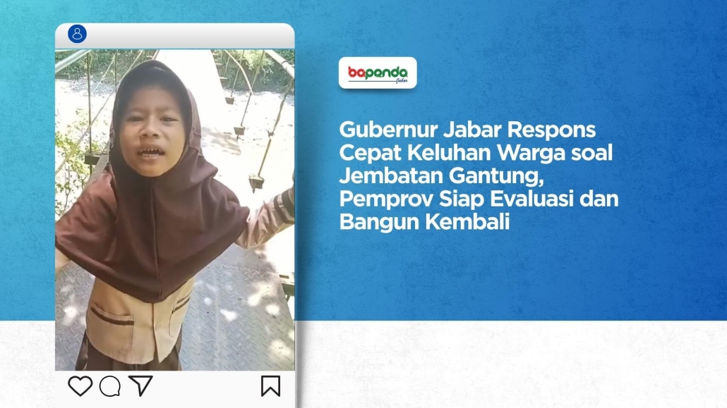 Bandung – Gubernur Jawa Barat Dedi Mulyadi menyatakan Pemerintah Provinsi Jawa Barat akan segera melakukan evaluasi, investigasi, dan klarifikasi terkait kondisi jembatan gantung yang dikeluhkan warga karena dinilai membahayakan keselamatan.