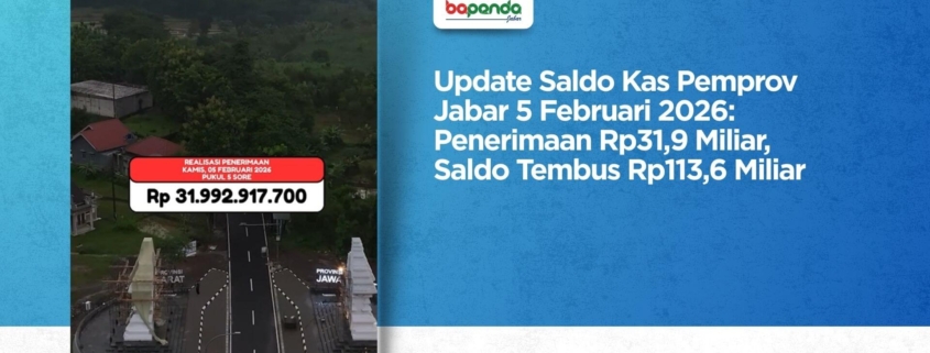 Bandung — Pemerintah Provinsi Jawa Barat menyampaikan update posisi saldo kas Rekening Kas Umum Daerah (RKUD) pada Kamis, 5 Februari 2026. Hingga pukul 17.00 WIB, realisasi penerimaan daerah tercatat mencapai Rp31.992.917.700.