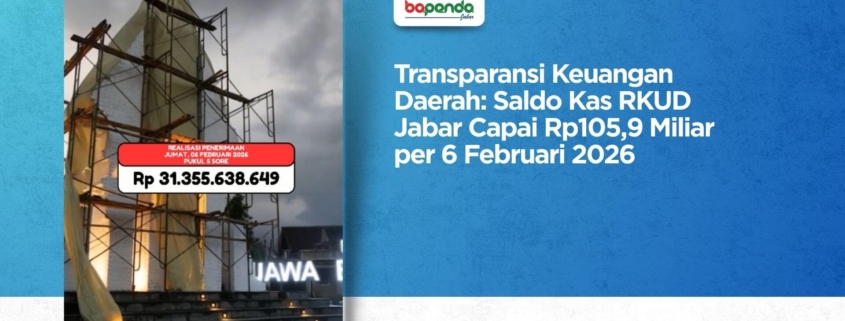 Bandung — Pemerintah Provinsi Jawa Barat kembali menyampaikan update posisi saldo kas Rekening Kas Umum Daerah (RKUD) sebagai bentuk transparansi dan akuntabilitas pengelolaan keuangan daerah. Laporan ini disampaikan untuk posisi hari Jumat, 6 Februari 2026, dengan realisasi penerimaan hingga pukul 17.00 WIB.