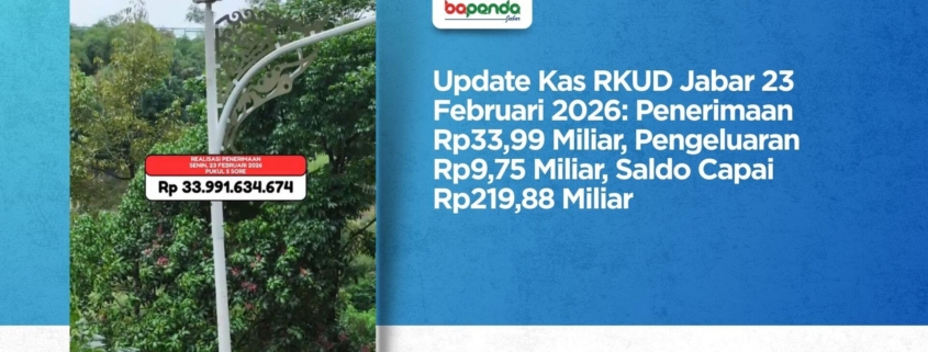Update Kas RKUD Jabar 23 Februari 2026: Penerimaan Rp33,99 Miliar, Pengeluaran Rp9,75 Miliar, Saldo Capai Rp219,88 Miliar