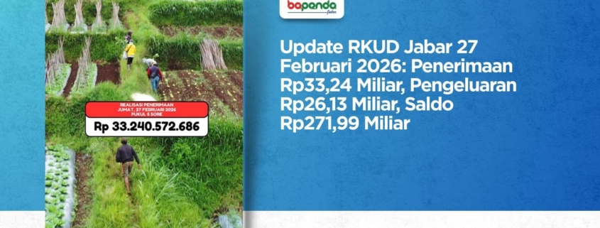 Update RKUD Jabar 27 Februari 2026: Penerimaan Rp33,24 Miliar, Pengeluaran Rp26,13 Miliar, Saldo Rp271,99 Miliar