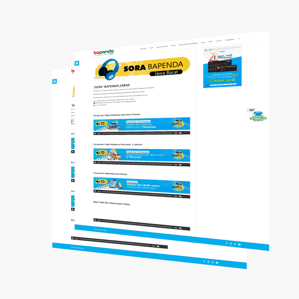 Sora Bapenda Jabar, layanan informasi berbasis audio dari Bapenda Jawa Barat. Memberikan kemudahan akses informasi pajak kendaraan bagi teman netra. Mendengarkan, menjelaskan, dan mendekatkan pada informasi pajak kendaraan.