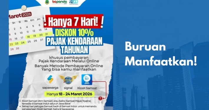 18 March 2026Resmi! Diskon Pajak Kendaraan 10% di Jawa Barat 18–24 Maret 2026, Ini Syarat, Cara Bayar, dan KetentuannyaBandung – Badan Pendapatan Daerah (Bapenda) Provinsi Jawa Barat…